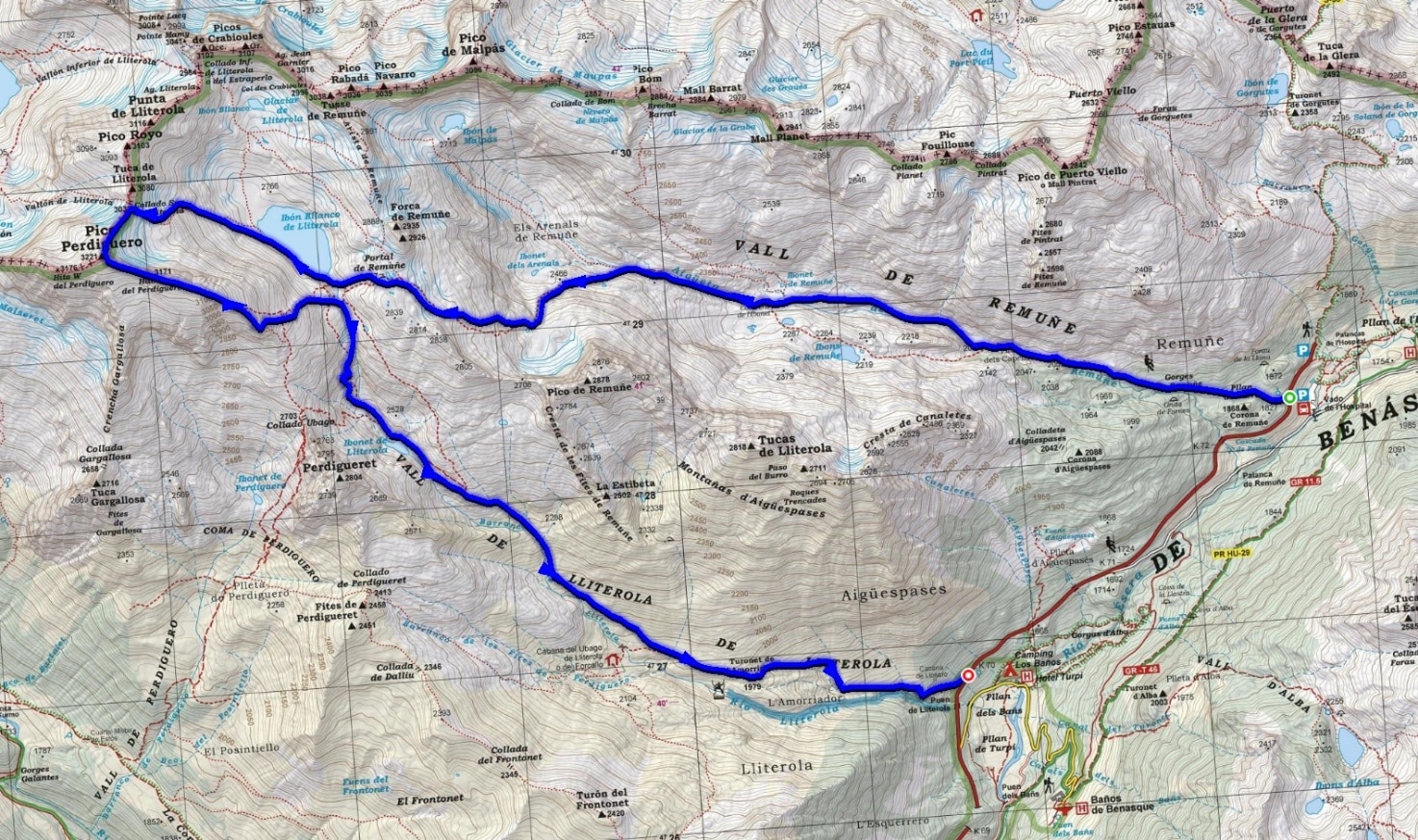 Opció A – Pic del Perdiguero (3.221m) des de l’aparcament situat al pont de Literola i final carretera A-139
