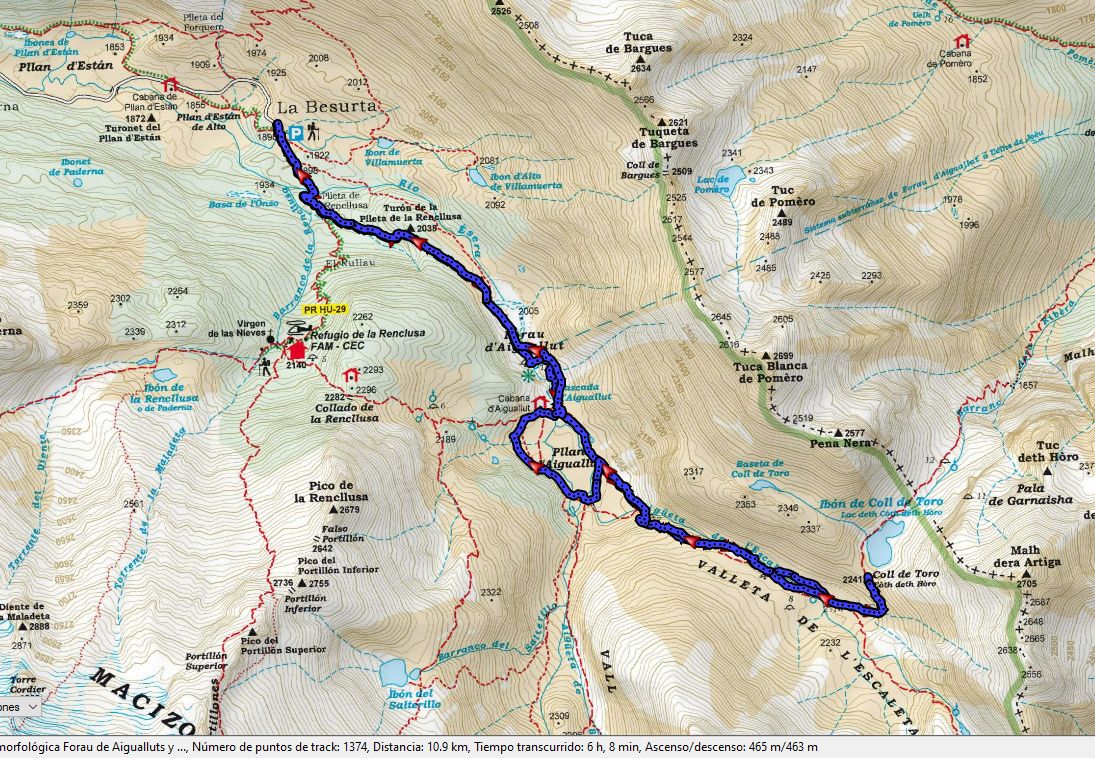 – Fins a l’Ibon de Toro: distancia 11 km, desnivell 411 m